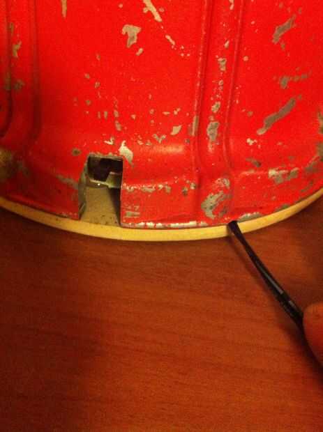 Luego alinear la placa MDF con la máquina de gumball y llevó a cabo en el lugar mientras se trazado 3 uniformemente espaciados a marcas a lo largo del perímetro del borde profundidad suficiente para penetrar en la base del chicle, pero no demasiado profundo, miss la pared delgada. Había perforado a través de estas marcas en el MDF, y llevó a cabo a la gumball base nuevamente para transcribir la posición del agujero en la pluma. Luego perforé agujeros poco profundos en la gumball base donde estaban las marcas de lápiz. Puede que desee para punzón estas marcas en primer lugar, como el pedacito de taladro puede caminar sin un hoyuelo. Una prensa del taladro puede ser en orden para este paso, pero tenía gran éxito con un taladro de mano. Usted probablemente querrá aprovechar los orificios con una rosca adecuada para sus tornillos de montaje. En este punto también cortar un agujero para el interruptor de encendido y presentó una ranura para el cable de alimentación