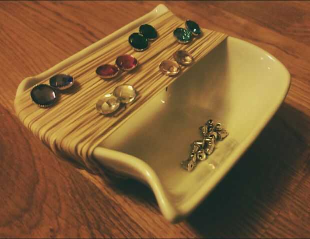 cómo hacer un soporte de pié pendiente de artículos para el hogar (sobre todo). Esta cosa realmente se ve muy bien en mi aparador, además de mantiene mi dangly pendientes fuera de la maraña que es la bandeja inferior de mi caja de joyería. Ah, y hace