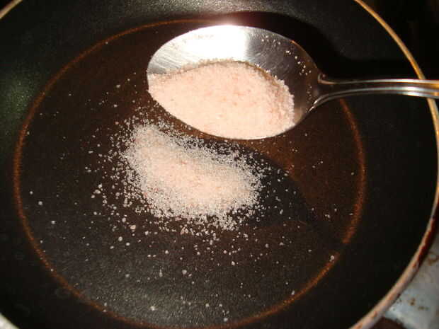 Poner la cucharadita de sal en una cacerola precalentada (Asegúrese de que está siempre en calor medio o bajo) y revolver por un minuto o dos para conseguir seco. Cuando lo ha hecho tomar hacia fuera y dejar que se enfríe.