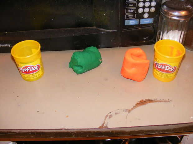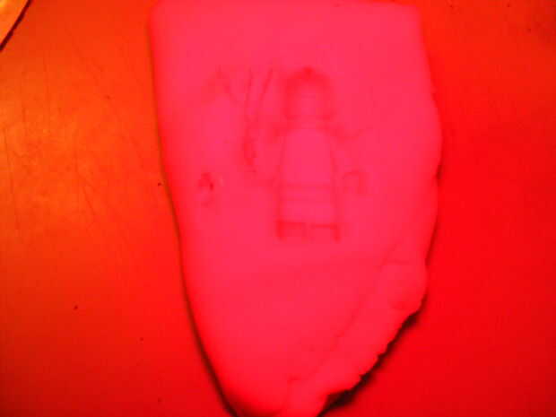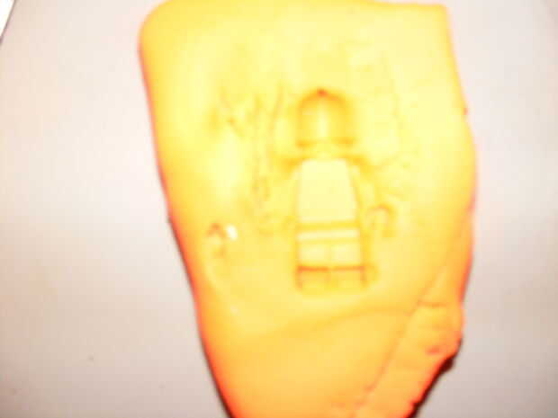 Ahora, no soy muy bueno en esto. Para el molde, puse a un tipo Lego en unos Play-Doh (estoy seguro arcilla podría funcionar mejor, pero no pude encontrar ninguna. Tuve la opción de obtener Bendaroos, pero sólo estoy tan peligroso). Para la horquilla (sólo entrecierra los ojos) usé mi cuchillo. No muy eficaz. Se me ocurrió después de utilizar palillos de dientes, pero demasiado tarde.
