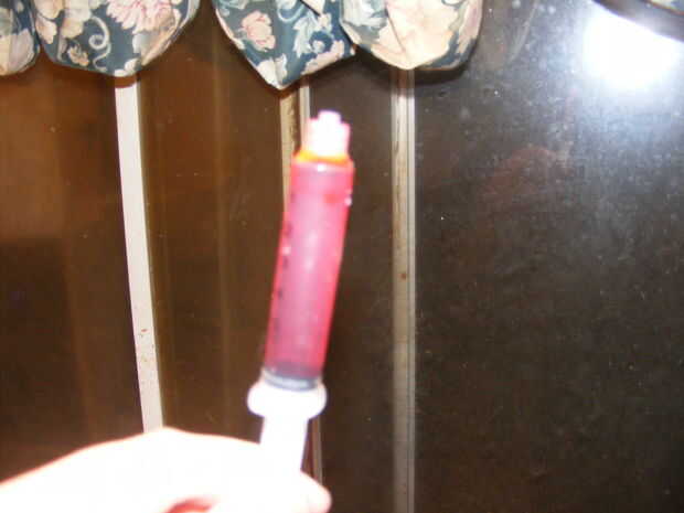 Aerosol de la cocina del aerosol en el molde. Esto impide que se pegue y de degustación como Play-Doh. Sorta. Ahora use la cosa de inyección poner la gelatina en. Te permite poner cualquier cantidad que desee y no hace un lío. Ahora con cuidado colóquelo en el congelador. Pongo en unos 30 minutos. Después de que el tiempo está para arriba, sacar. Debe ser bastante sólido. Usted querrá lavar.
