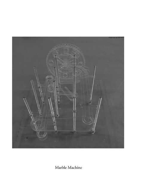 Prototipo para un máquina de canicas. Un entretenido sistema de rieles con un engranaje eleva las canicas para desciendan por el recorrido transparente y terminando con un GONG.