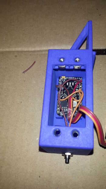 En este punto vale encender el Gongbot otra vez para asegurarse de que todo lo hiciste correctamente. El servo debe moverse cuando usted presiona el botón y podrás ver ligeramente el núcleo de conducido por el plástico en el lado de la caja.