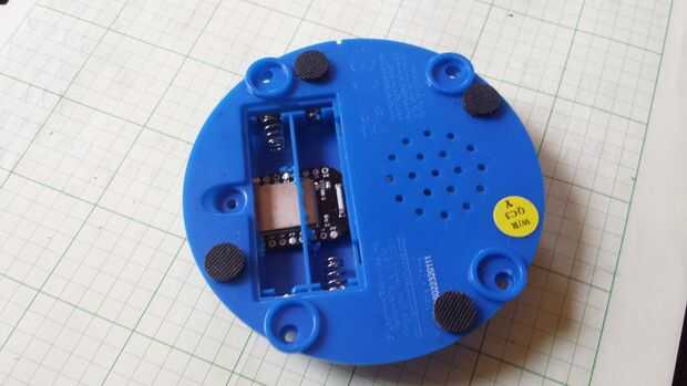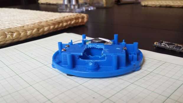El botón necesita espacio para el núcleo de la chispa con un agujero para el puerto USB. Opté por usar el espacio reservado generalmente para las baterías para el núcleo. Use una Dremel para cortar una ranura para la Junta como se muestra en la imagen. Trate de dejar el ajuste algo ajustada para evitar la ondulación del núcleo alrededor de demasiado después de Asamblea. También puede perforar agujeros de acceso pequeño para los dos botones encima de la base para permitir la reprogramación.