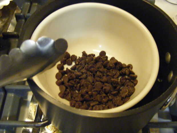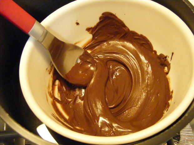 Añadir una gota de aceite o manteca a fino hacia fuera el glaseado de chocolate.