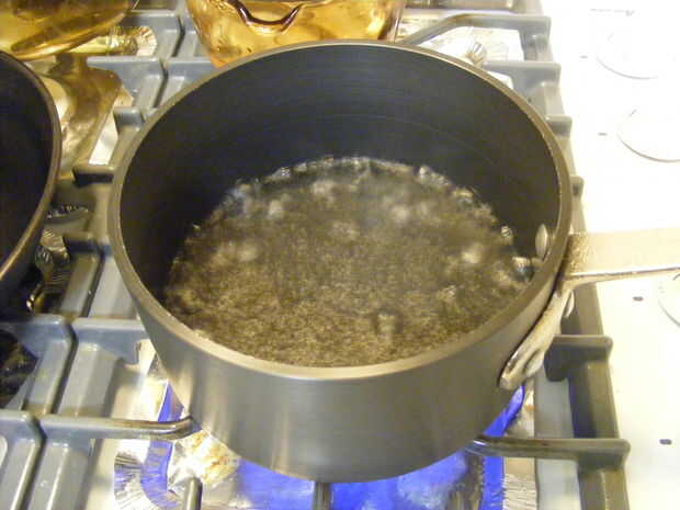 El recipiente se caliente y puede revolver las fichas para derretir.