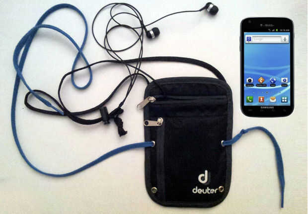 Incluso puede montar su teléfono con la linterna en (cortar un agujero, coser una hoja transparente, o simplemente arreglarlo con la cremallera o poner algo debajo del teléfono para que la bolsa revela la linterna)