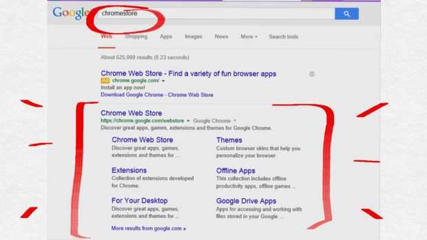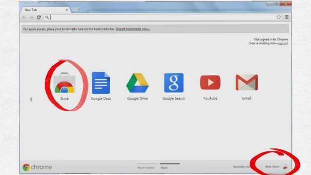 Para entrar en la Chrome Web Store, usted puede ya sea Google la palabra "Chrome Web Store", o puede hacer clic en el icono de la bolsa en la parte superior del navegador de Google.