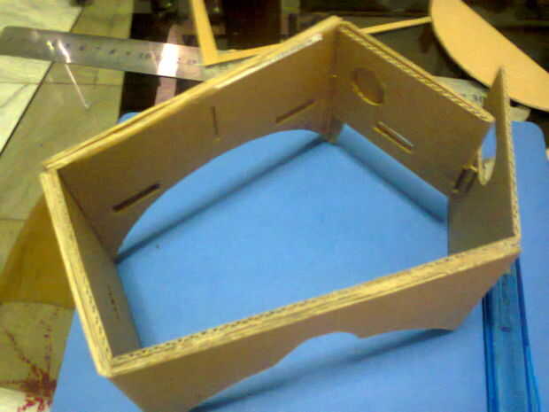 Puede que necesite compensar sus partes anteriores al realizar la 2ª capa. Para mí, tuve que hacer agujeros para el soporte de las lentes por todos lados, pero no para el separador (el pedazo de cartón que divide lo que ve el ojo) y la aleta del botón de imán. Para las partes, yo sólo había adornado algunas de las aletas por lo que sería al ras en el agujero.