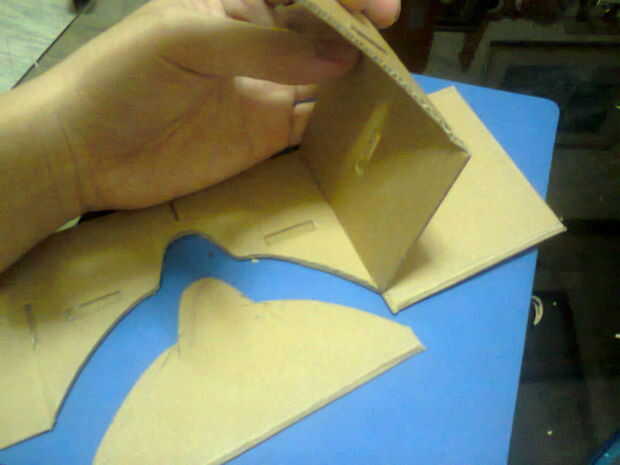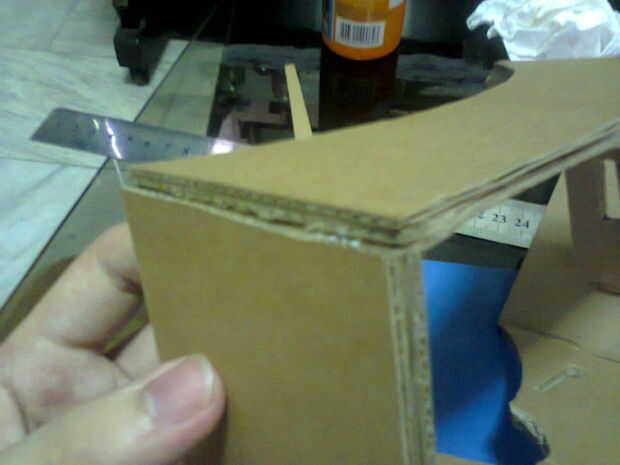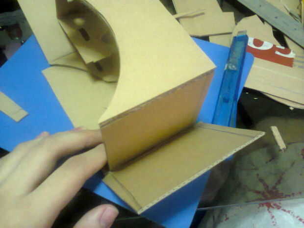 Lo que me gusta de cartón es que usted puede ser creativo sobre él, y es flexible siempre y cuando usted sabe cómo usarlo. Puesto que había zonas en la plantilla original donde ya había 3 capas (botón lateral y la lente soporte magnético), estaba inspirado por su rigidez por lo que aplican aquí.