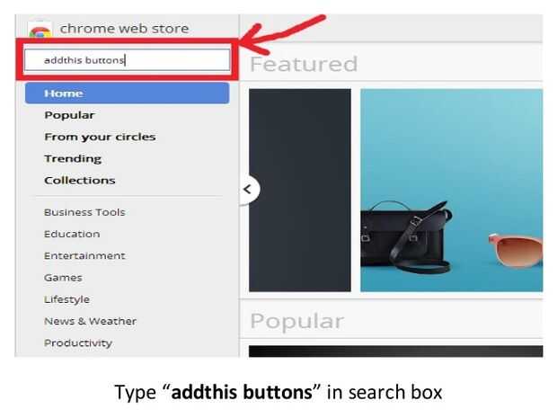 Paso 3: en el tipo de caja de la búsqueda "botones de addthis"