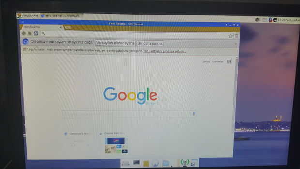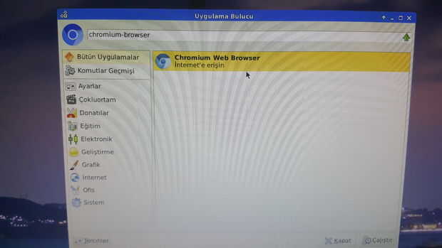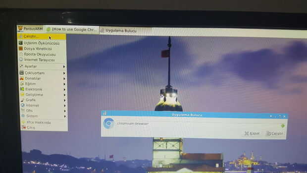 Cuando se realiza el procedimiento de reinicio del sistema, vaya a Inicio de PardusARM en el escritorio >> seleccione "Çalıştır..." como >> tipo cromo >> seleccione el programa haciendo clic en el botón derecho al progreso.