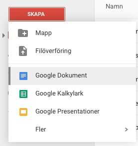Klicka på "skapa" och sedan "Google Dokument" för att skapa ett nytt textdokument som kan sedán delas.