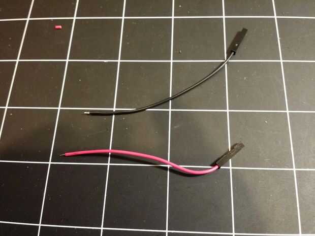 Corte de los puentes para dejar aproximadamente 3" de alambre conectado a los extremos hembra. Tira de los cables, girar firmemente, lata con soldadura libre de plomo y corte hasta aproximadamente 1/16".