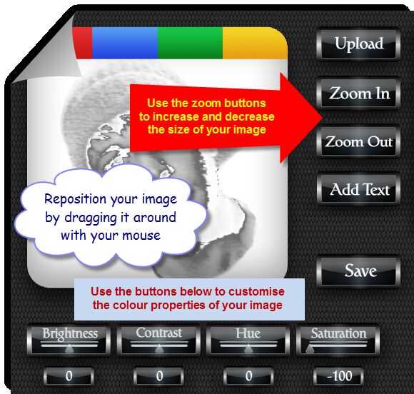 También puede personalizar las propiedades de color de la imagen ingresada utilizando los controles deslizantes de brillo, contraste, matiz y saturación.