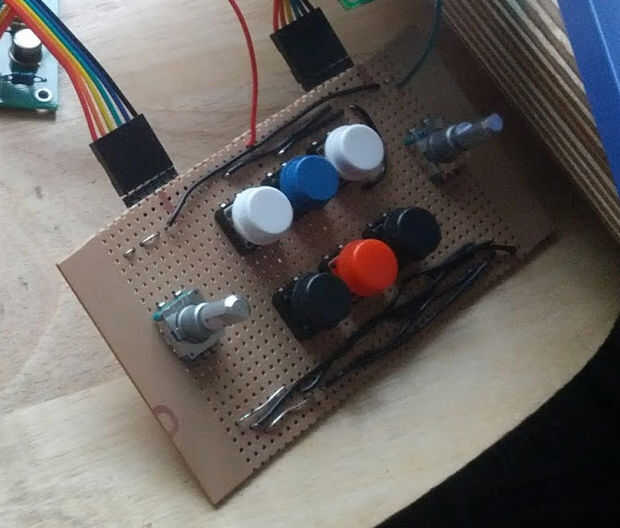 - El botón del panel frontal se conectado a los pines del ADC 0 a 5 con un tirón o externo o baje la resistencia (lo que es más fácil, en retrospectiva Levante habría sido más fácil entonces sólo necesitaría tierra en mi tablero de panel frontal).