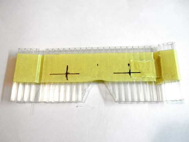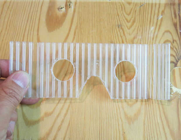 • Perfore los dos orificios con un diámetro ligeramente más pequeño que las lentes. Si no tienes una broca de ese tamaño, utilice un archivo o una sierra de calar.