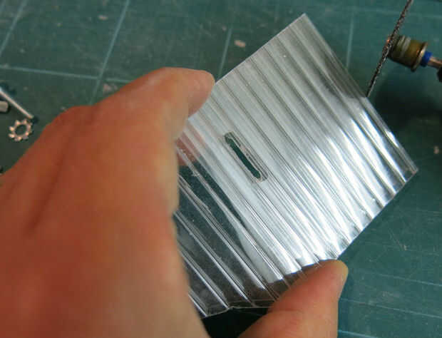 Taladre un orificio regular en la aleta del titular. alinear y marcar la altura correcta del centro del agujero.
