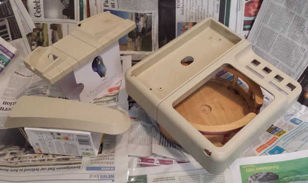 Debate con un color más interesante, pero ya tuve una lata de pintura en directo de plástico en negro, así que fue con eso. También me gustó la idea del negro en contraste con los botones rojos grandes.