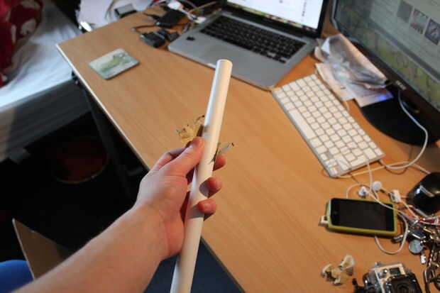 En primer lugar, tomar el tubo de PVC y reducida a su tamaño desireed. El tamaño que usé fue aproximadamente de 460 milímetros. Este hecho robusto y fácil sostenerse y desplazarse. La visión de gopro desde esta distancia también es bastante decente.