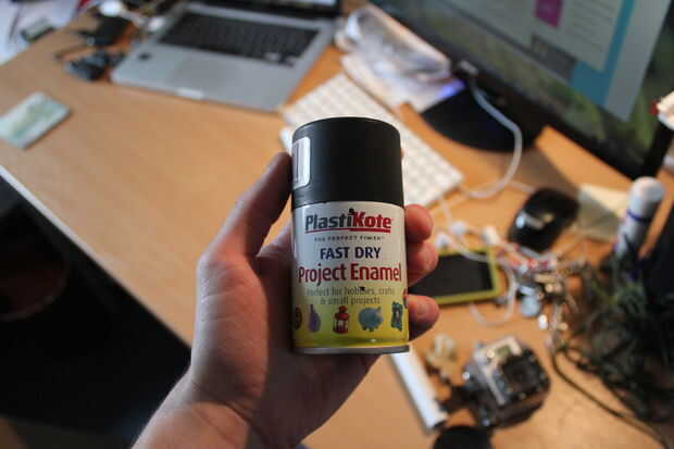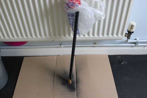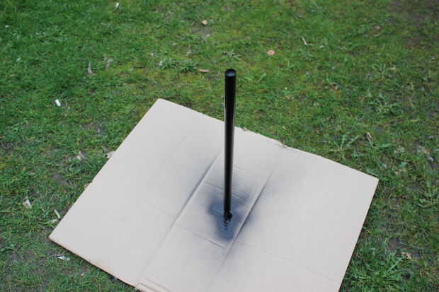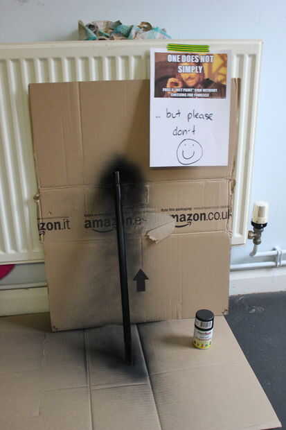 a continuación, he aplicado 3 manos de pintura negro mate. Justo debajo de £3 de B & Q. Salí de cada capa de aproximadamente una hora para secar. Asegúrese de que rociar por lo menos 20cm de la superficie y muy ligeramente para evitar la ejecución de la pintura. El Polo se quedó 3 horas después de la última capa.