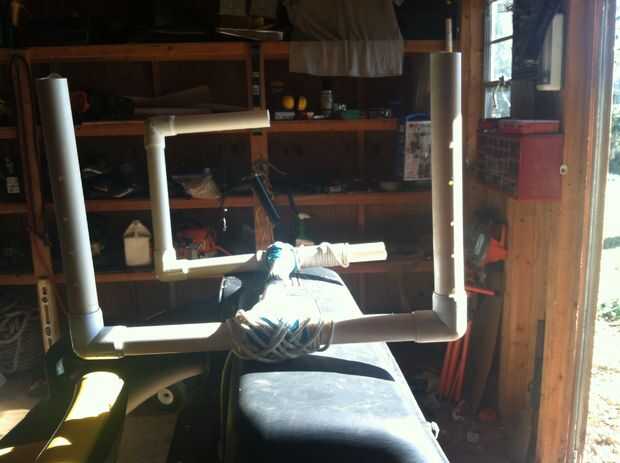 Tomar largos trozos de tubo de PVC y corte a estas dimensiones aproximadamente.