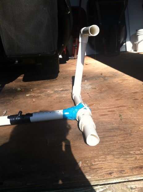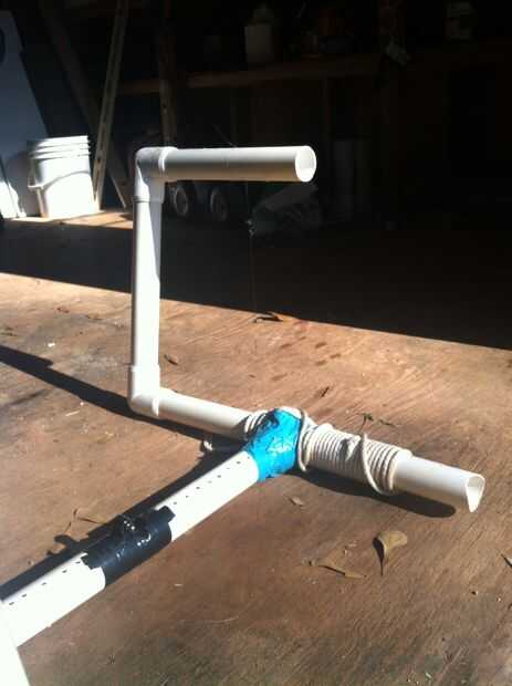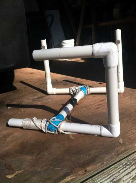 Otro accesorio opcional es un gancho o señuelo colgando de la parte delantera en el campo de visión de GoPro. Esto se une al otro polo de 2 pies. Tome el último polo de 1,75 pies y fíjelo a un lado del poste de 2 pies con un conector de codo. En la parte superior del poste, poner otro conector de codo y coloque el poste de 1 ft. Cuelgan una línea con anzuelo de uno de los agujeros de taladro para atraer peces