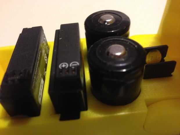 Como dije, la razón principal para este experimento fue idear una manera de guardar mi colección de baterías de la cámara en un solo lugar. Y como yo estaba haciendo eso, pensé que así podría contener los usados también. Para lograrlo, he formado los lados de la caja para coger las lengüetas de liberación de las baterías GoPro como se cerró sobre ellos. Esto dobla las lengüetas hacia afuera, lo que los hace sobresalir de los lados de la caja como se cierra. Este es el comportamiento normal de la caja cuando las pilas están insertada derecha arriba. Sustitución de pasó las baterías en su ranura boca abajo, las pestañas se mantienen dentro. Ahora, mirando la caja abierta o cerrada, inmediatamente puedo ver cuántas baterías buenas he dejado simplemente por conteo de tapas de la batería (abierto) o pestañas (cerradas).