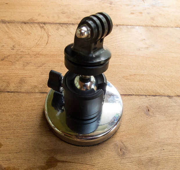 necesitaba una rápida y sucia para montar una cámara de acción, de tamaño mediano cámara o teléfono inteligente con firmeza a una estructura de acero en mi trabajo. No estaba contento con los parches adhesivos que venia con mis cámaras GoPro y el con