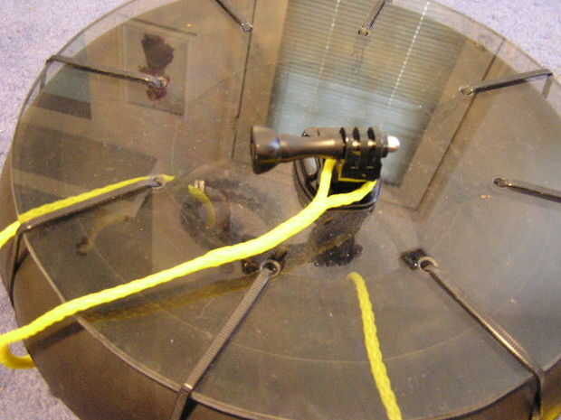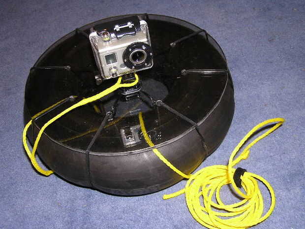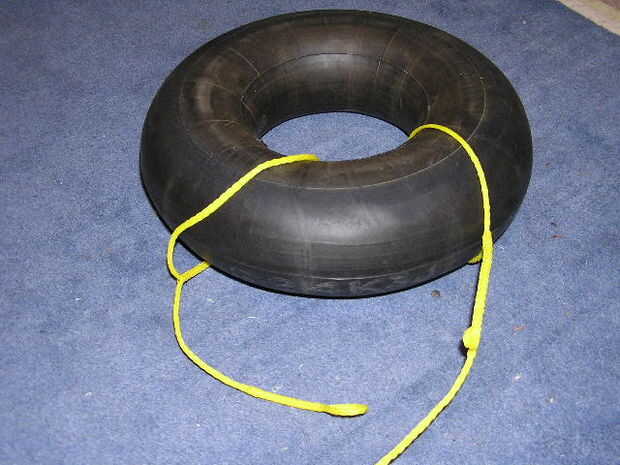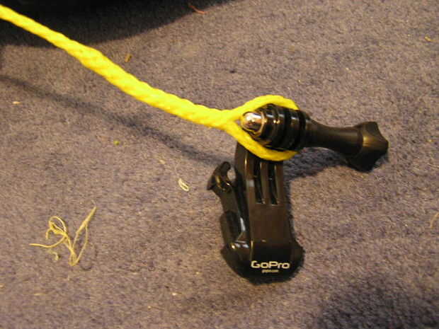 Utilicé la cuerda trenzada de polipropileno 1/8 para amarres. Construir uno corto para asegurar que la cámara está atado al tubo, construir un largo un aprox 15 pies por el largo atar a su tubo interior.