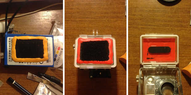 ¡ Listo! A poner todos juntos. Espere las 24 horas completas Sugru de tiempo de secado antes de usar el velcro, aunque es realmente bajo un poco de tensión al sacar la batería. También, para aliviar la tensión en el cable de alimentación, me gustaría conectar la batería y la luz para el GoPro antes de conectarlos juntos.