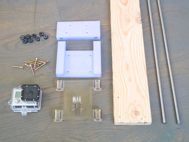 Piezas, herramientas y todas las actividades necesarias para hacer su propia cámara Dolly para su actioncamera como GoPro, Actionpro o cualquier otra cámara de vídeo / DSLR compatibles con conector de trípode estándar. Cámara puede ser conectada dire