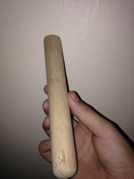 Así que primero tendrá que cortar una sección del viejo palo jardinería a su longitud deseada (mina un poco más alto que mi mano). Opcional, si desea que se puede lijar hacia abajo de la sección, lo hice.