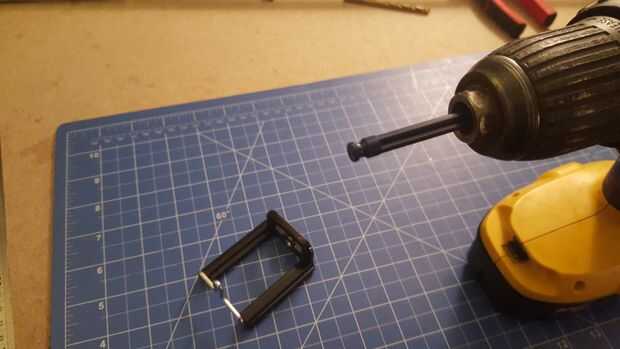 Poner un trozo azul de k'nex en el portabrocas, alto torque, baja velocidad yo toque en el sostenedor del palillo teléfono selfie