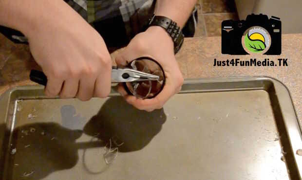 He sacrificado un rayado y había astillado 55mm filtro de Saturno. Romper la lente sobre un cubo de basura o bandeja y retirar los fragmentos con los alicates. Asegúrese de no dañar la cubierta de la lente o el anillo de retención.