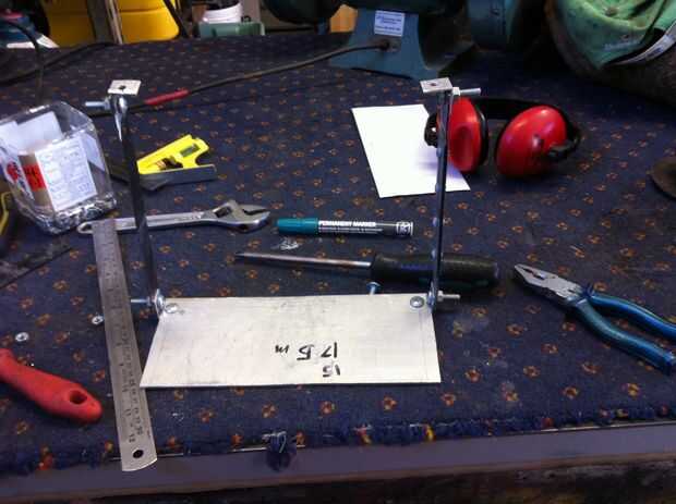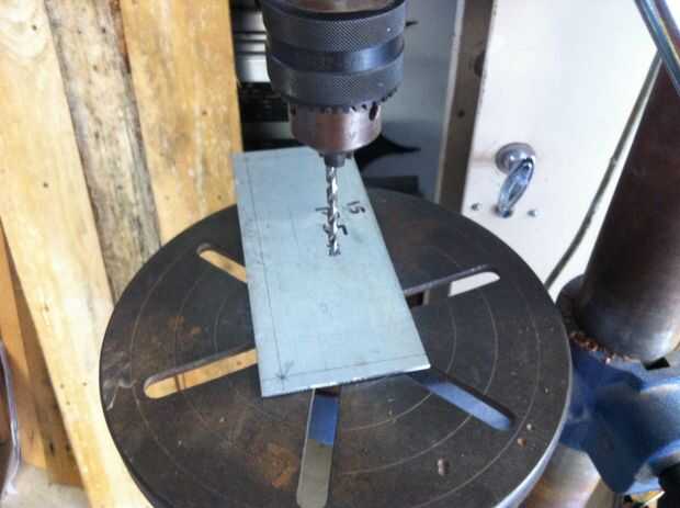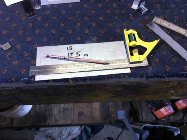Usar su metal ángulo para determinar en donde perforar, tanto en lateral de vigas y placa base. IMPORTANTE: Asegúrese de que las vigas laterales son paralelas.