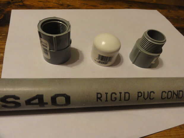 - 3/4 schedule 40 PVC conducto sobrante del proyecto anterior (carro de pesca de surf). Barato de Home Depot (HD). Utilicé una longitud corta para el apretón de la mano y cortar un trozo más de una sección de la extensión.