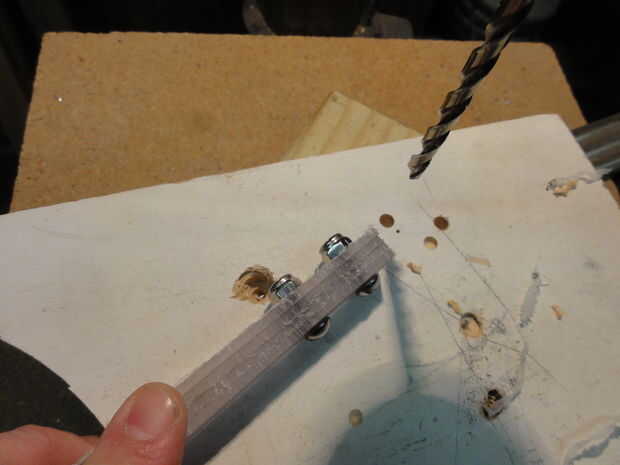Taladre un orificio de 7/32" en los extremos opuestos de las piezas de Lexan cortaron los dientes a su tamaño. Cortar a la longitud requerida (ver más adelante paso de cómo se ensamblan y descubrirlo). Guardar los cortes con los agujeros para el paso siguiente.