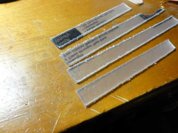 Corto (4) 1/2" ancho x 4" aprox. longitudes de Lexan para hacer los 3 dientes.