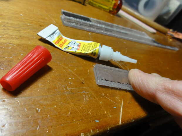 La. 093" Lexan es similar en grosor a los 2 dientes externos, pero más delgado que la punta interior. 2 espesores de Lexan son más gruesas que la patilla interior, así que decidí unir dos sección y luego los archivos hasta el grosor adecuado.