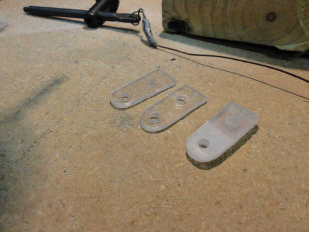 Yo iba para hacer las 3 clavijas de barra de aluminio delgado presentó ante el grosor adecuado, sin embargo, me di cuenta el aluminio se corroe en agua salada y el pensamiento del material de Lexan.