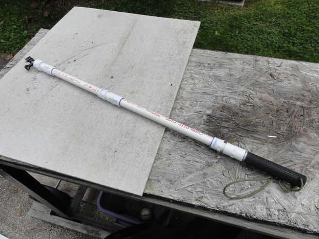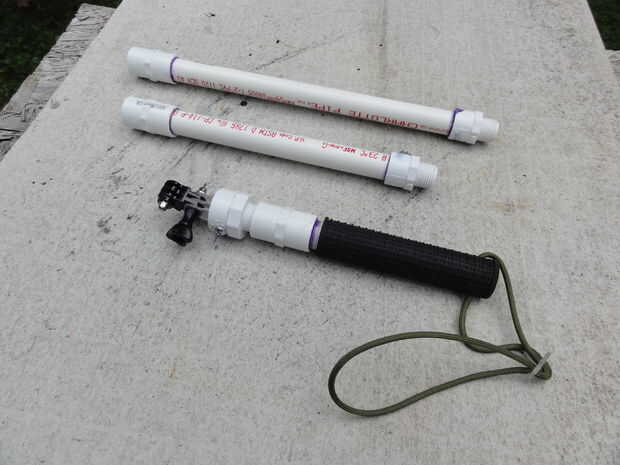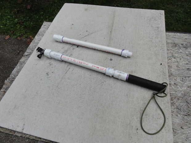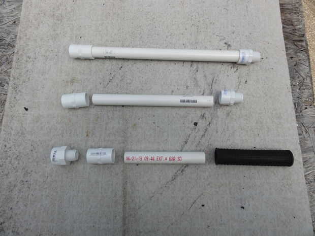 Éste utiliza tubería de 1/2" PVC porque el diámetro exterior era casi lo mismo que la 7/8" ID bicicleta agarre por el mango.