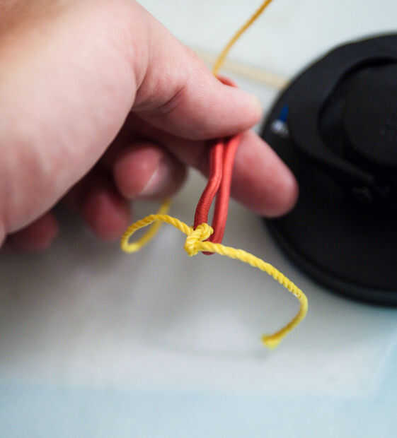 Corte una longitud de cable de mason para ser un poco más largo que el poste y adjuntarlo a la cámara. No atar a la montura de succión - en su lugar, atarla a la cadena de correa en la parte posterior de la placa.
