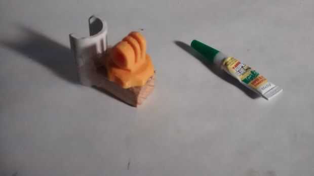 Ahora para unir el soporte de Gopro a la montura de la moto. Quería atornillarlo, pero no tenía los tornillos lo suficientemente grandes como para caber a través del orificio en la parte inferior de la montura. Así, en cambio, usé la misma como solía asegurar la madera para el PVC. Primero usé el pegamento y luego poner abajo de la montura en la madera. Entonces había rodeado el Monte con un montón de pegamento caliente. Sólo para reforzar la glule super.