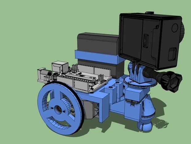 Para el diseño de las piezas nos hemos servido de nuestra experiencia previa montando los printbots de bq (beaetle, y renacuajo) y alguno más hemos visto aquí en thingiverse, Hemos partido de algunas piezas de ellos, las cuales hemos copiado entrada-salida modificado para dar con nuestra solución. La idea ha sido construir un chasis solido, sencillo y compacto. Para su diseño hemos usado autcad y sketchup. Hemos tenido algunos pequeños problemas de colisiones y por ello veréis el robot está impreso en dos colores, pues ha sido necesario retocar algunas piezas del primer prototipo por problemas de encajes. Esto con el inventor de las Naciones Unidas ONU solidworks o no pasa! Las hemos claro en su versión actual son las del prototipo veis impreso. Estamos trabajando en mejorar algunas cosas, como una montura para el wifi.