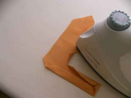 Doble el margen de costura en la parte posterior de la tela y presione con una plancha de vapor caliente. Utilizar sus marcas como guías por donde doblar. Tenga cuidado, el vapor es muy caliente y podría quemarle.