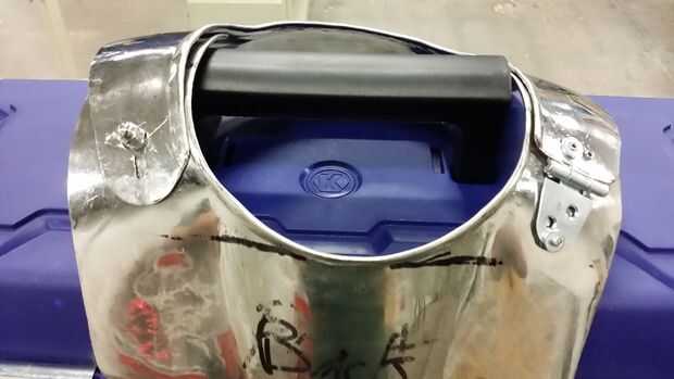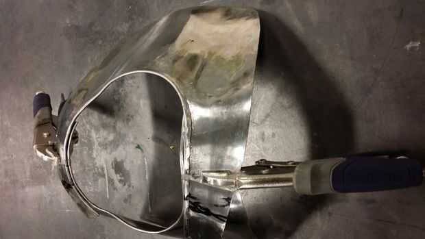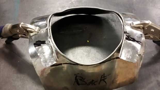 Perforar el agujero para el otro lado caber en su post. No taladre el agujero, utilice una whitney u otra herramienta de perforación. Taladré mina y atrapados en el taladro y envuelve toda la obra alrededor de la broca, rasgó el agujero y arruinó casi toda la obra. Usted no puede ver la lágrima de más de un pie de distancia y será cubierto por las correas de Peto y las hombreras, pero va seguir creciendo como se usa la armadura y eventualmente la pieza tendrá que ser reparado con un soldador TIG o acabo de cambiar.