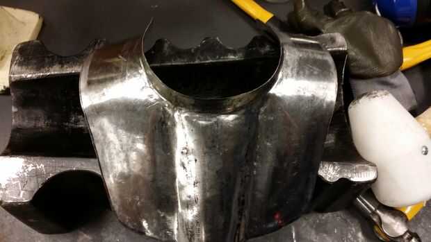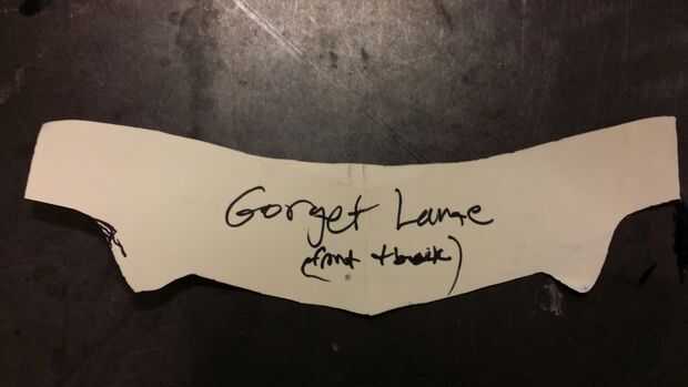Primero crear una plantilla de cartulina para la parte delantera un lames posterior. Debe ajustarse verticalmente dentro de sus pecho y la espalda piezas. También debe ser lo suficientemente altos como para proteger el cuello de golpes, pero lo suficientemente baja para evitar romper la mandíbula Si se cae o recibe un golpe en la cabeza por detrás, o rompiendo la parte posteriora de su cabeza if cae o recibe un golpe en la cabeza de la parte delantera. Sí es complicado y hay dolorosas decisiones que tiene que hacer sobre las disyuntivas.