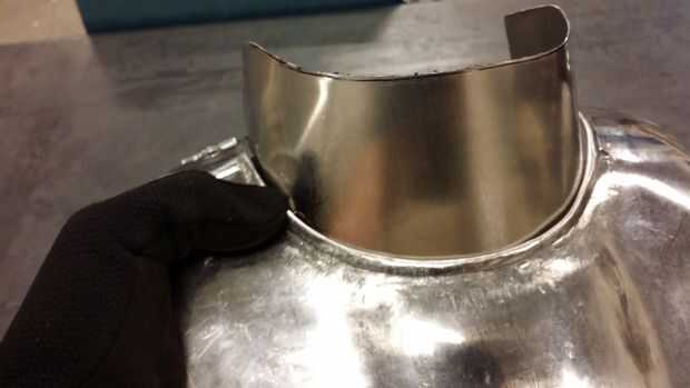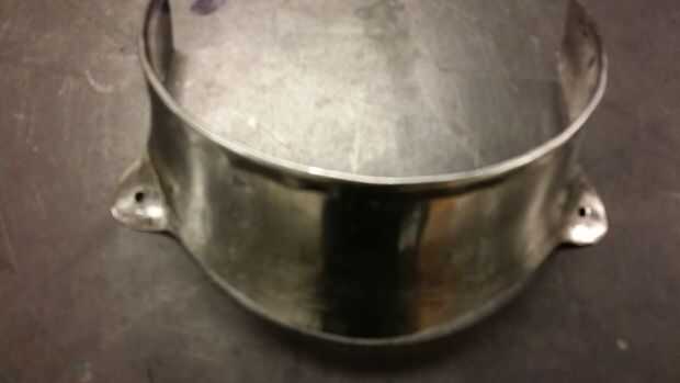 Observe que en la foto que he dejado las pestañas en la parte inferior de las piezas que pueden ser doblada perpendicularmente a la pieza que puede ser remachada en la parte delantera y detrás las placas.