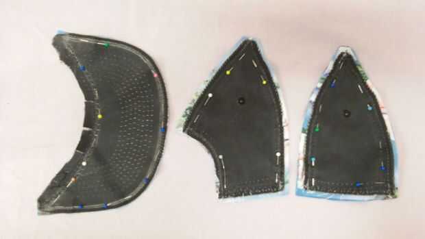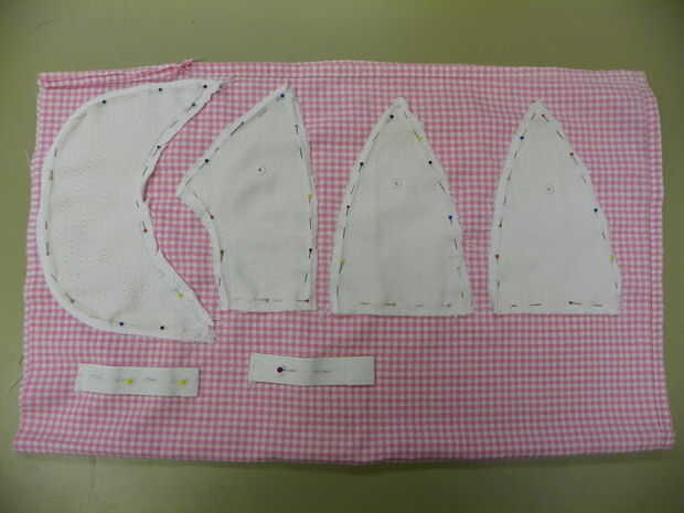 6 pedazos para la sección de la tapa, (4 regular pie formas y 2 con un corte de.) Corte 2 de la sección del proyecto de ley y 2 tiras de velcro.